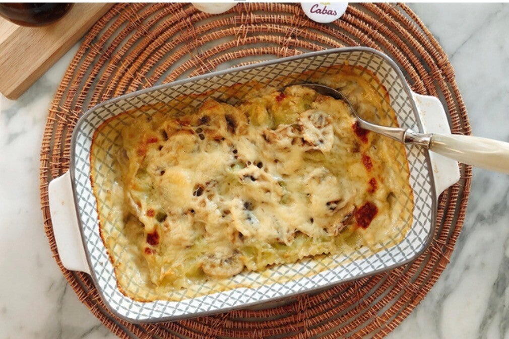Gratinée de Ravioles aux Champignons, Poireaux et Comté